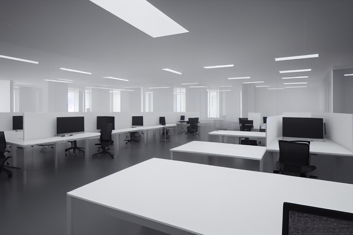 สำหรับพื้นที่สำนักงาน การใช้ LED Panel เป็นแสงหลักจะช่วยประหยัดพื้นที่และให้แสงสว่างที่สม่ำเสมอทั่วทั้งออฟฟิศ การเลือกใช้ไฟขนาด 60×60 ซม. หรือ 30×120 ซม. ติดตั้งเป็นตารางบนเพดานจะช่วยให้การกระจายแสงเป็นไปอย่างมีประสิทธิภาพ ควรเลือกแสงสีขาวเย็นที่มีความสว่างสูงและค่า CRI ที่ดี เพื่อช่วยในการมองเห็นและลดความเมื่อยล้าของสายตาระหว่างการทำงาน